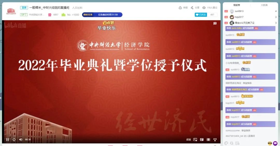 在现场热烈的掌声中,毕业典礼落下帷幕。典礼直播前,学院播放了精心制作的毕业视频《致经院人的一封情书》,7分13秒的视频,49个片段,50张照片,每一帧画面背后都有令人难忘的故事,都是毕业生们独一无二的青春记忆。2个小时的典礼直播中,评论不断,赞声连连,“经路有我,一路生花”、“祝2022届毕业生前程似锦,毕业快乐”、“感谢老师的教导,表白经院老师们”、“想念老师们,想念同学们”……一词一句都是同学们深情的告白,身在五湖四海,心在此刻共情。