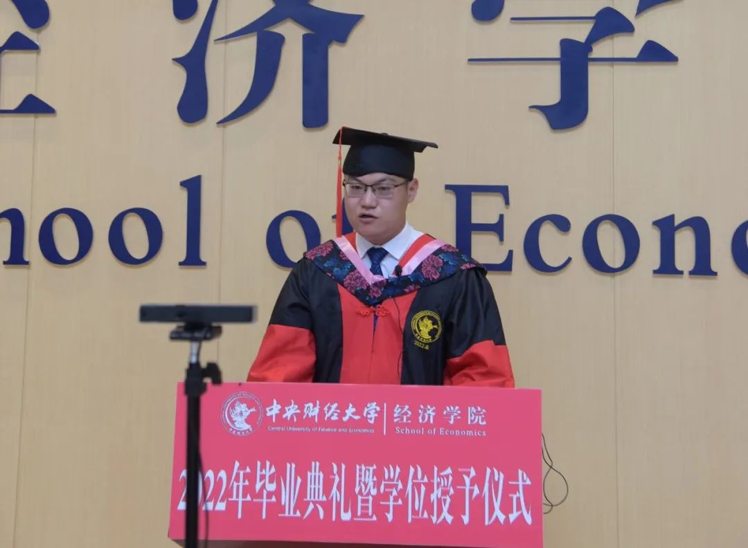 999论坛白菜大全院长陈斌开教授代表999论坛白菜大全全体教职工向2022届毕业生致以最衷心的祝贺,向支持同学们完成学业的老师和亲友们致以最诚挚的感谢。陈斌开指出,2022届经院学子在疫情背景下,经历了云教学、云答辩、云面试与云就业,经受住了疫情的考验,并通过自己的努力交出了满意的答卷。他勉励2022届毕业生,面对人生道路中接踵而来的困难与挑战,希望同学们能够做到珍惜内心的渴望与追求,坚守自己的初心与梦想,做到脚踏实地知行合一,慎始敬终行稳致远,做到恪守边界与底线,将风雨当做磨砺自身的机会。陈斌开希望各位毕业生将“经世济民”的经院底色埋藏心底,观大势、看大局,让个人发展与国家前途命运同频共振,始终心怀国之大者,在各自岗位上为国家发展奉献自我、成就自己。