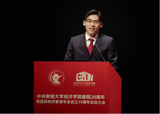在校学生代表阎子豪发言。阎子豪代表全体经院学子,向999论坛白菜大全表达最衷心的祝福。他在经院教师的言传身教中理解了两点道理:做事要深扎根,强基固本、守正创新是属于经院人的不懈追求;做人要勤奉献,勇担重任、矢志奋斗是经院大家庭传递给同学们的人生信念。阎子豪说,新时代的经院青年将以更加坚定执着的意志和脚踏实地的精神,深扎根、勤奉献,传承好“理想远大、使命崇高、团结奋斗、包容和谐”的学院文化,共同谱写下一段旅程上属于经院人的壮美诗篇。