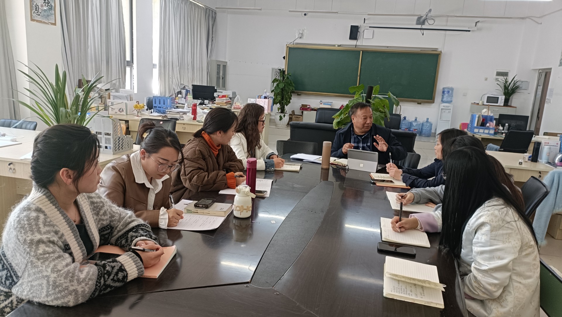 为进一步提升《语文与商务文化》课程的教学质量,推动教学创新,3月27日,我校领导赵校专门组织公共基础教学部的所有语文老师,在7栋101办公室开展了一场极具意义的指导会议。此次会议聚焦教学中的关键问题,旨在为语文教学工作指明方向,助力教师提升教学水平。1.jpg
