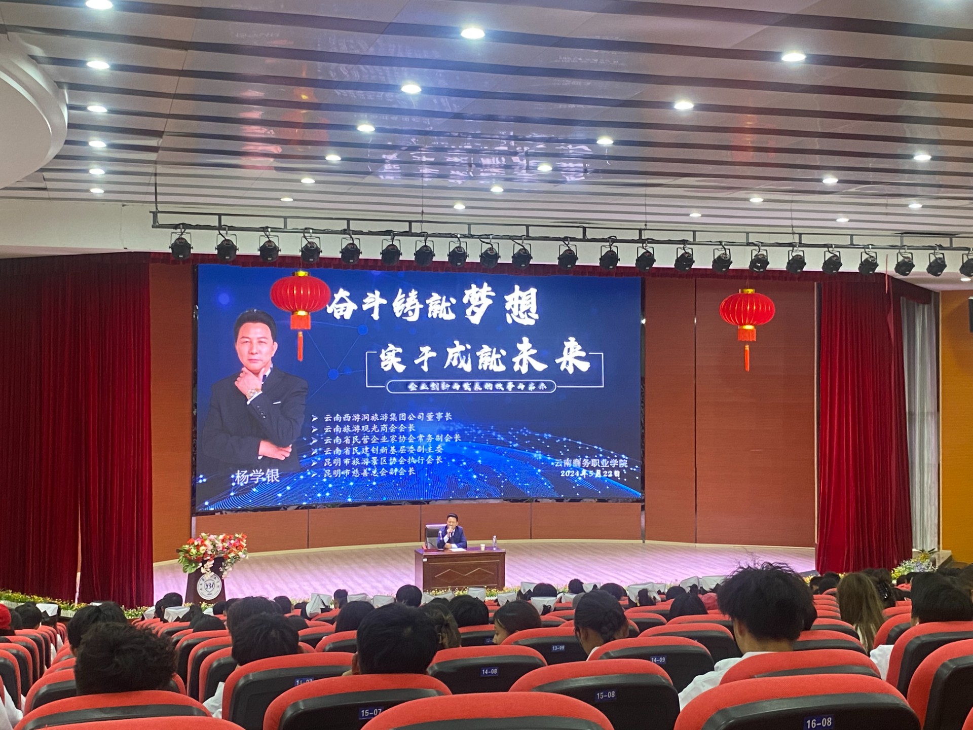 2024年5月22日,云南西游洞旅游集团公司董事长杨学银到我校开展宣讲,向在场的师生分享了企业创新与发展的故事。师生们反响热烈,在此次宣讲会中收获颇多。