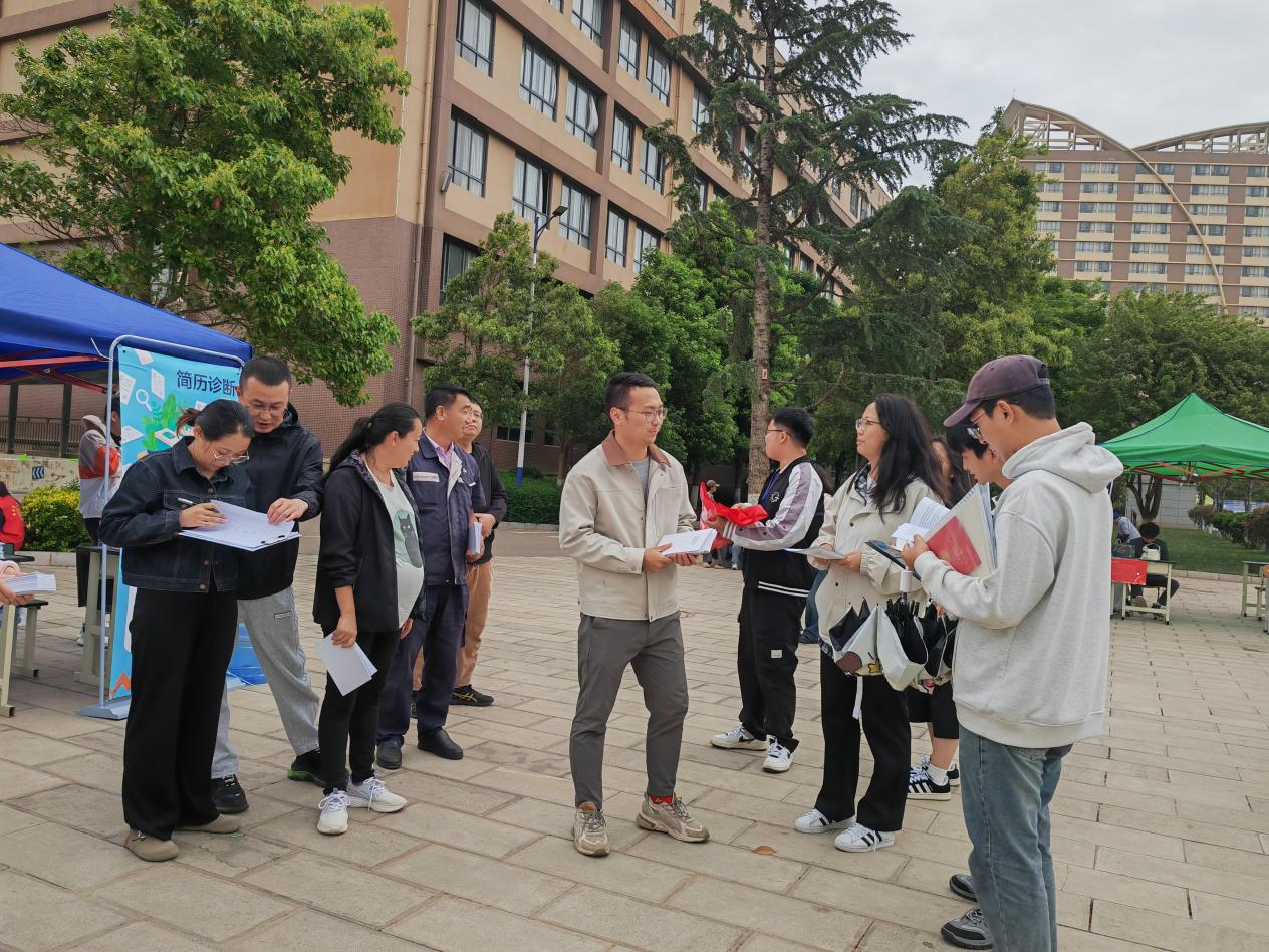 jinnianhui今年会行政党支部于2025年4月29日开展第一议题的学习,会后为深入贯彻落实中共中央国务院关于实施就业优先战略,充分发挥基层党组织战斗堡垒作用和党员先锋模范作用,推动党建与就业工作深度融合,助力2025届毕业生高质量充分就业,在校园双选会现场开展就业服务工作。