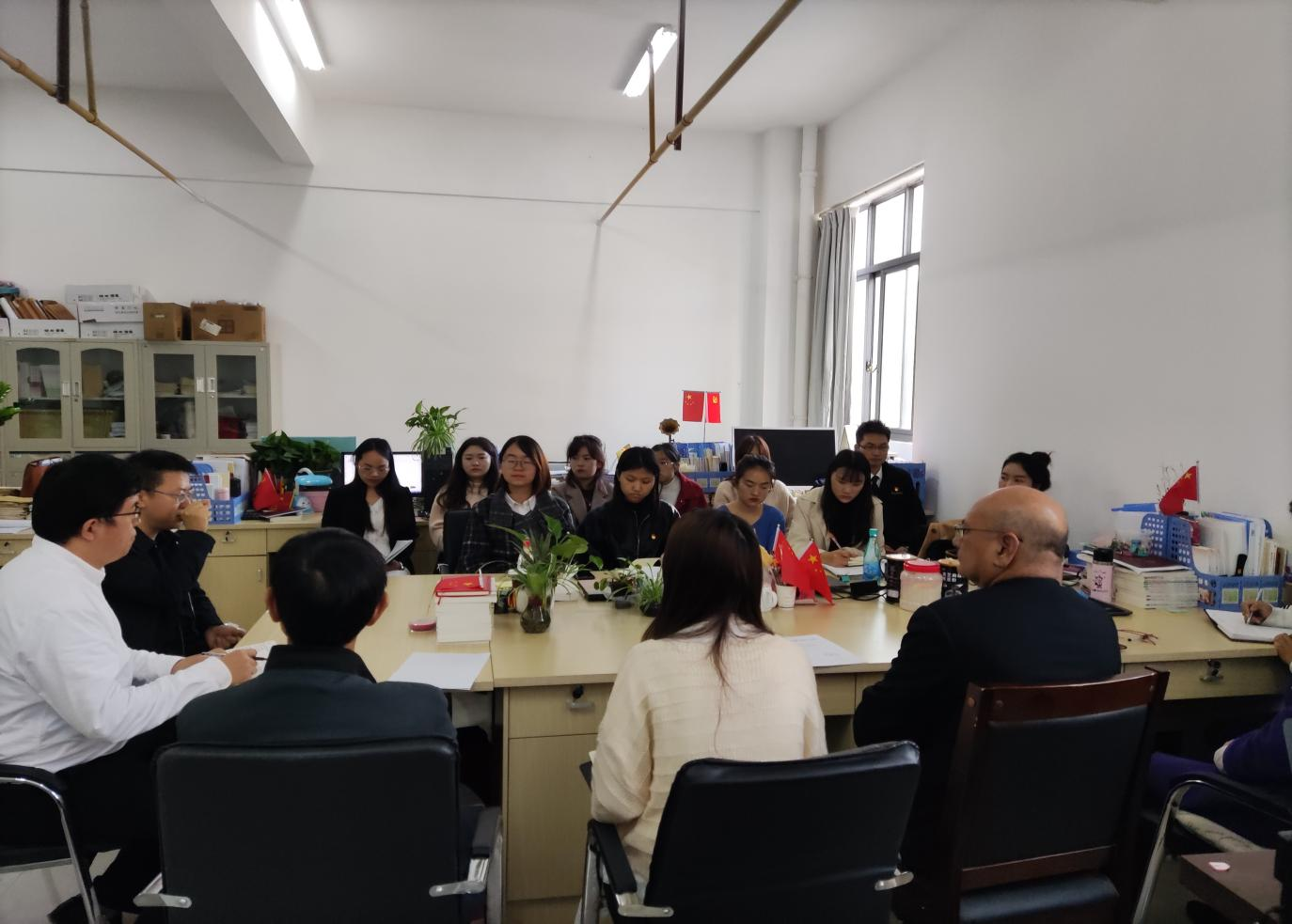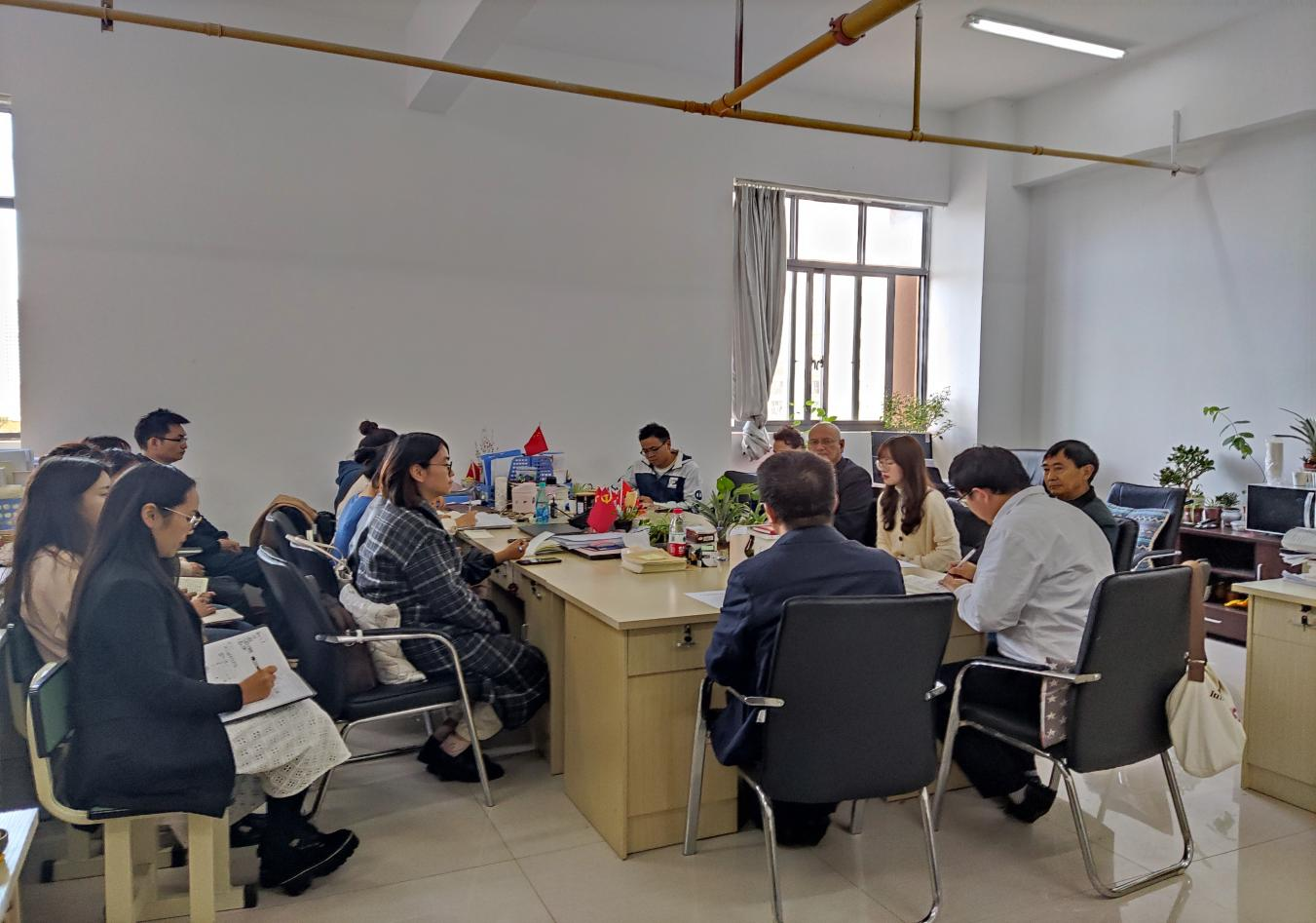 2021年11月1日下午,jinnianhui今年会理事长王郅强教授、副校长刘德飞博士、人事处处长毛志远教授与新到任的思政部部长郑伟林教授及全体思政部教师在思政部办公室,召开了一个简短的部门会议。
