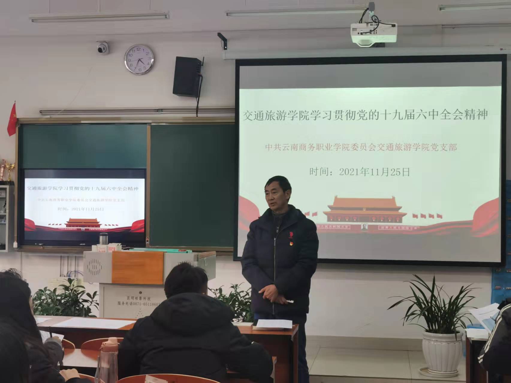 2021年11月25日下午,交通旅游学院全体教职工在交通旅游学院党支部书记毛致远教授的带领下,在三栋104教室进行了党史学习。在学习中通旅游学院党支部书记毛致远教授给全体教职工讲述了共产党的发展,党全心全意为人民服务的宗旨。从根本上改变了中国人民的前途命运、开辟了实现中华民族伟大复兴的正确道路、展示了马克思主义的强大生命力、深刻影响了世界历史进程、锻造了走在时代前列的中国共产党——党的十九届六中全会从五个方面总结概括了党百年奋斗的重大历史意义,为我们深刻理解党百年奋斗的历史逻辑、理论逻辑、实践逻辑,在全面建设社会主义现代化国家新征程上创造新的历史辉煌注入强大思想和行动力量。我们作为高校教育工作者,一定要跟随党的路线,为国家,为社会,为人民培养优秀的社会主义社会的建设者和接班人。