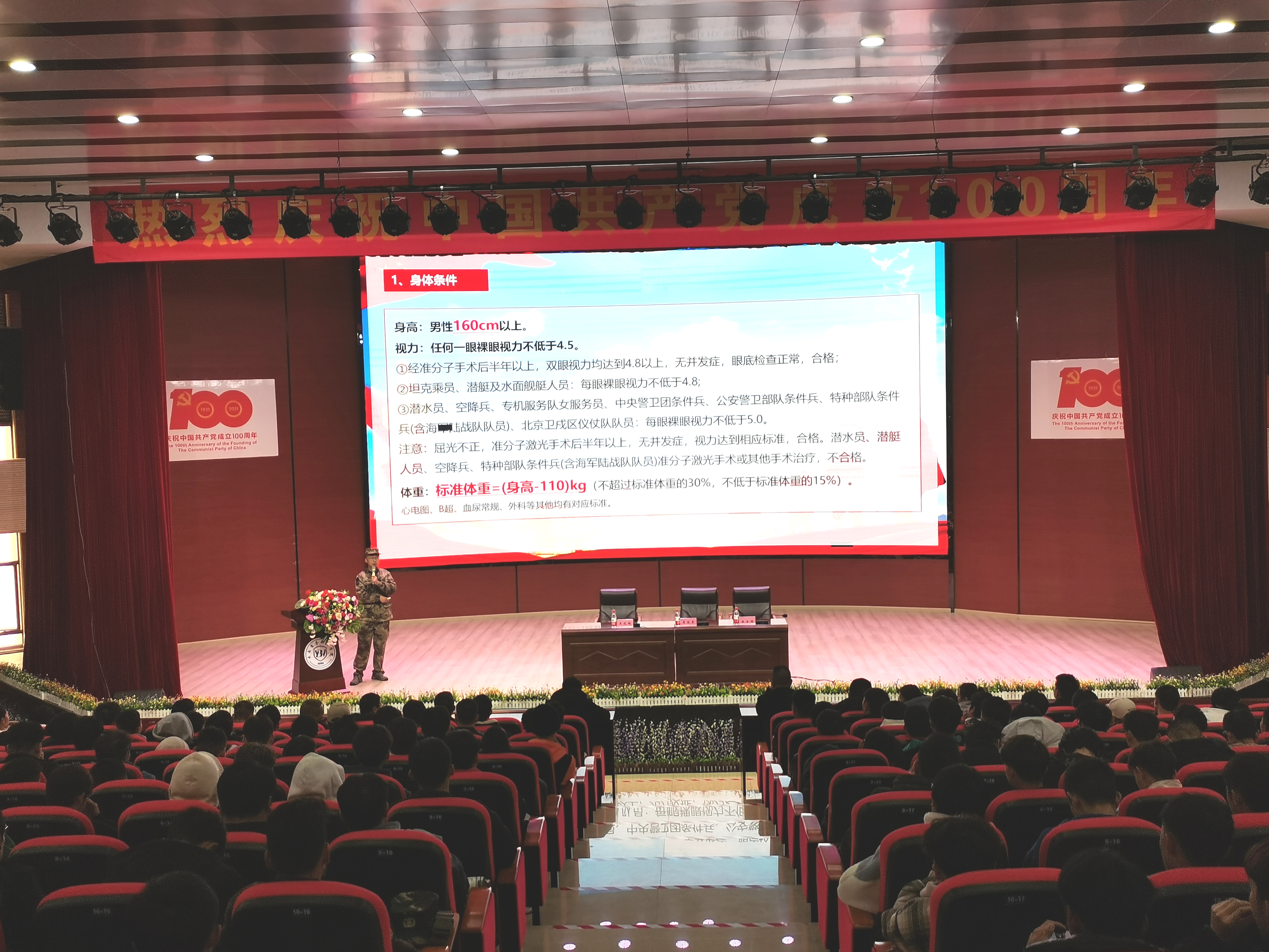 嵩明县人民武装部参谋李忠孝进行了征兵动员,激发了我们适龄青年参军报国的热情,也饱含对我们青年立志军营成才的殷切希望。同时对当前大学生征兵基本条件、体检注意事项、政治审核、福利政策等方面进行宣讲,并对同学们提出的疑问进行解答。最后,希望大家响应国家号召,发扬爱国拥军的优良传统,努力为部队输送新鲜的血液。为实现中国梦、强军梦,添砖加瓦,做出积极的贡献。