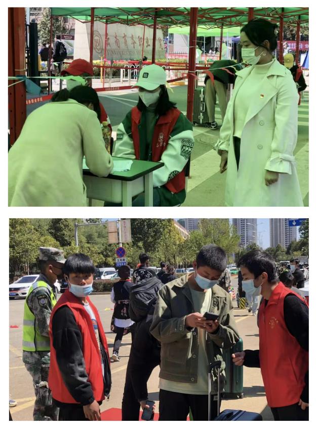 活动中,全体党员与教师热心服务讲奉献,严格落实学校疫情防控工作细则,有序参与督促学生佩戴口罩、查看核酸检测报告、健康码、行程卡以及核验返校健康卡、申请书、承诺书、入校登记等流程;辅助学生志愿者处理临时问题,维持现场人员及车辆进出秩序;同时积极向学生宣传返校后疫情防控注意事项。