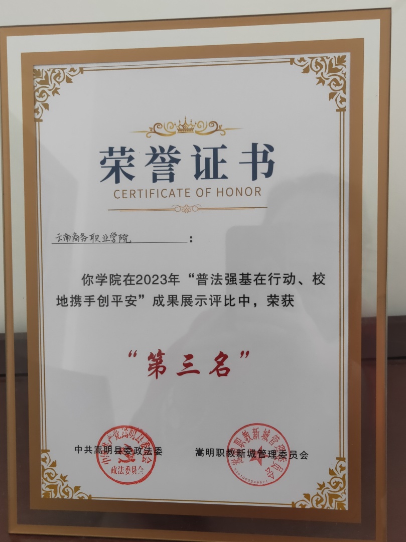 5.2023年“普法强基在行动、校地携手创平安”成果展示评比中荣获第三名;